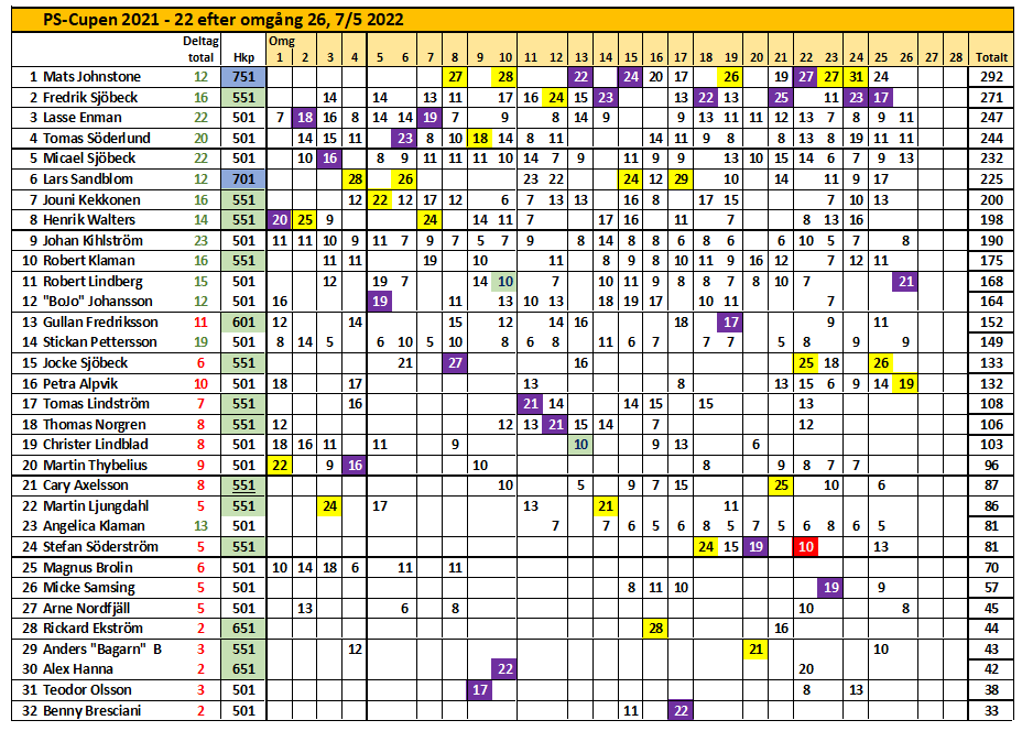 26e deltävlingen vill jag helst förbigå med tystnad. Dom få (9) som var med på 3vi förstår säkert varför.